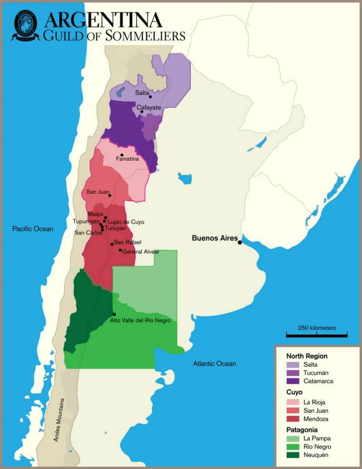 Argentina es una zona vitícola influida por la cordillera de los Andes, en general siempre posee viñedos de regadío que se nutren de los ríos que proceden de la misma.