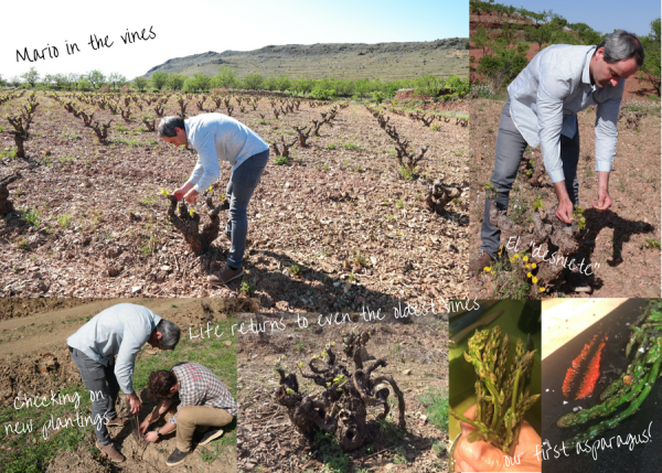 Este mes toda la atención la acaparan nuestros viñedos, a pesar de que – al haber agotado las existencias de dos de nuestros vinos (¡sí, a principios de abril!)- el trabajo administrativo ha sido bastante tedioso mientras tratábamos de gestionar los cupos. Además, nos han visitado varios importadores de EE. UU. y Bélgica, y también hemos tenido el placer de recibir en nuestra bodega a Aina Mee Myhre, afincada en Noruega, que obtuvo el título de MW al mismo tiempo que Fernando. Siempre llevamos a nuestros visitantes a ver las viñas, ya que son un elemento fundamental para nosotros y este es un momento idóneo para ver como la vida vuelve a la vid.